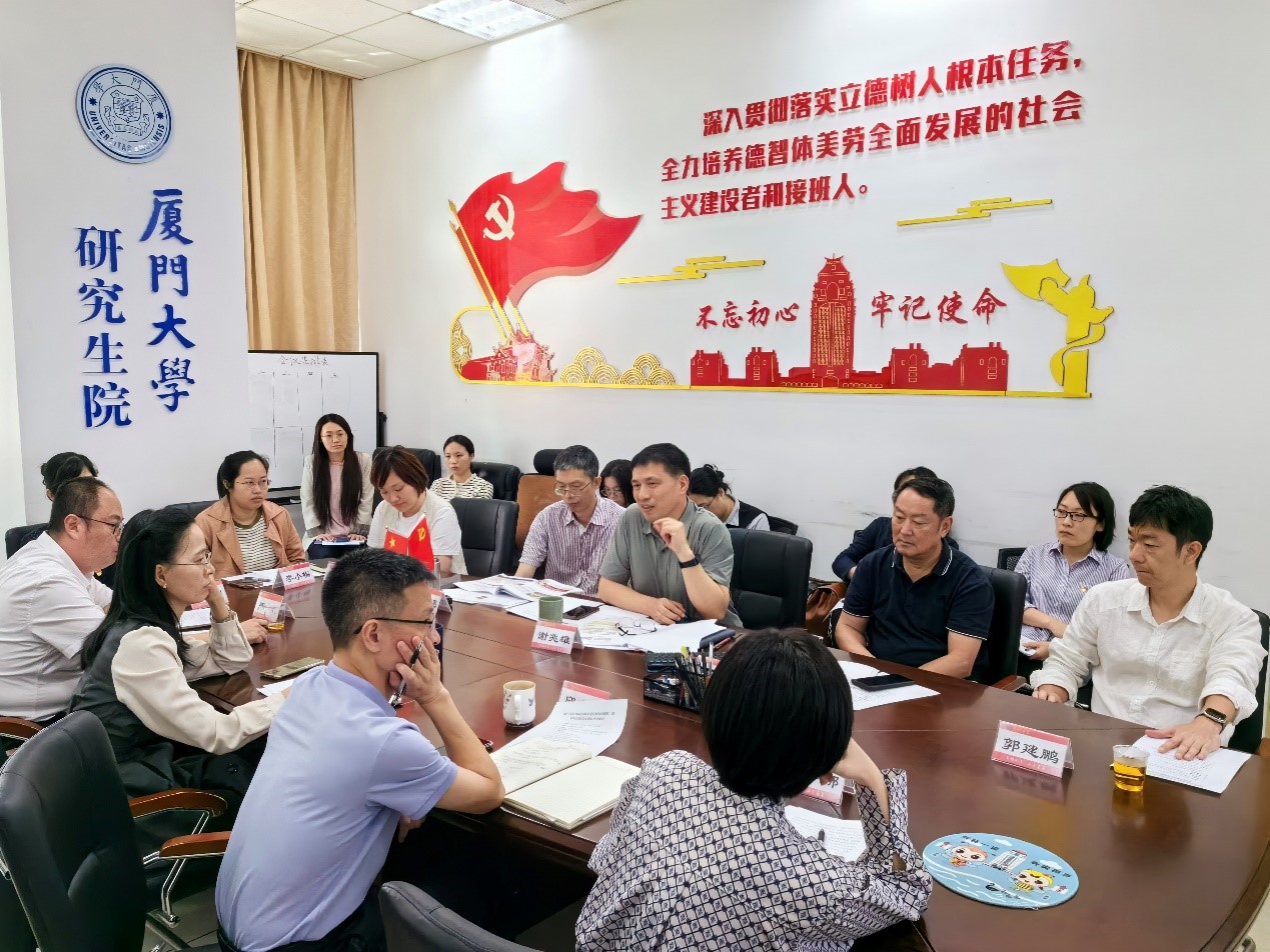 5月15日下午,研究生院党支部召开党员基本培训第二课交流研讨会,支部党员围绕中国式现代化与世界一流大学建设的主题展开热烈的探讨交流。研讨会由研究生院党支部书记、常务副院长谢兆雄主持,机关党委委员梁卫中受邀出席研讨会,支部全体党员参与研讨交流,畅所欲言,气氛认真而热烈。