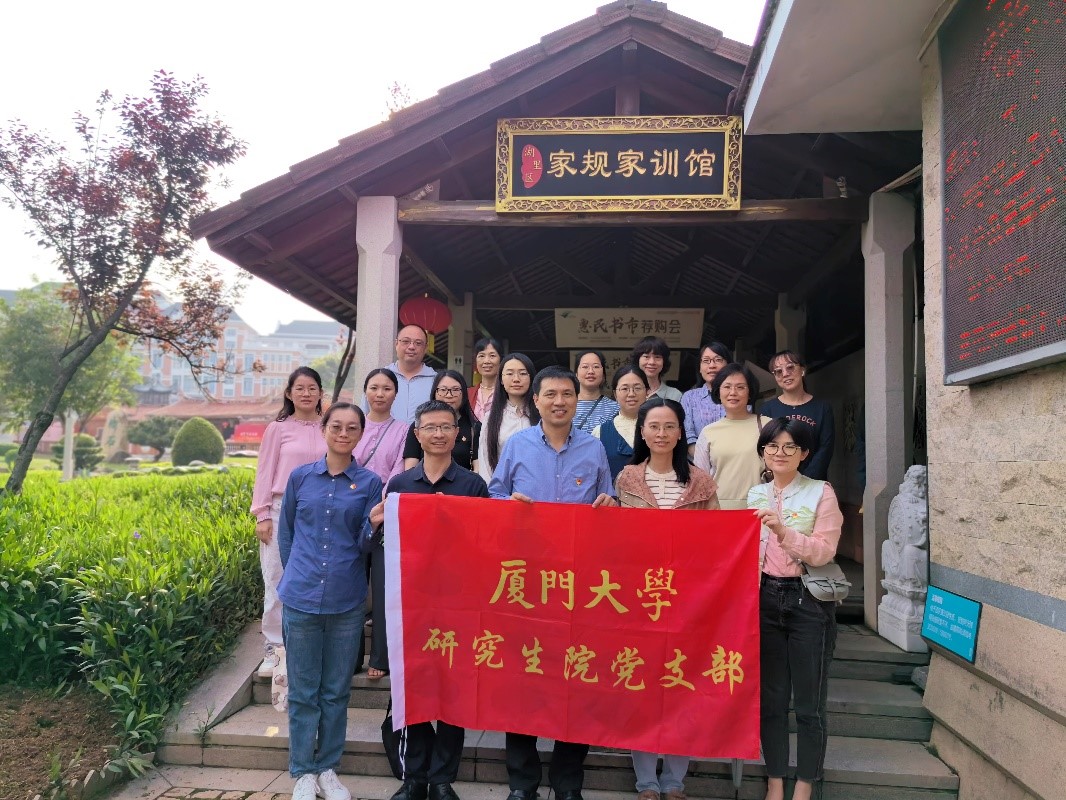 为深入贯彻落实党的二十大精神,学习贯彻习近平新时代中国特色社会主义思想,强化党的纪律教育,引导全院党员同志学思想、强党性,弘扬优秀传统文化,坚定理想信念,厚植家国情怀,2024年4月26日,研究生院由党支部书记、常务副院长谢兆雄带队,组织党员同志前往厦门江夏堂家规家训馆、湖里区家规家训馆等廉洁清正家风教育基地,开展“弘扬廉洁文化,涵养新时代良好家风”的主题党日活动。