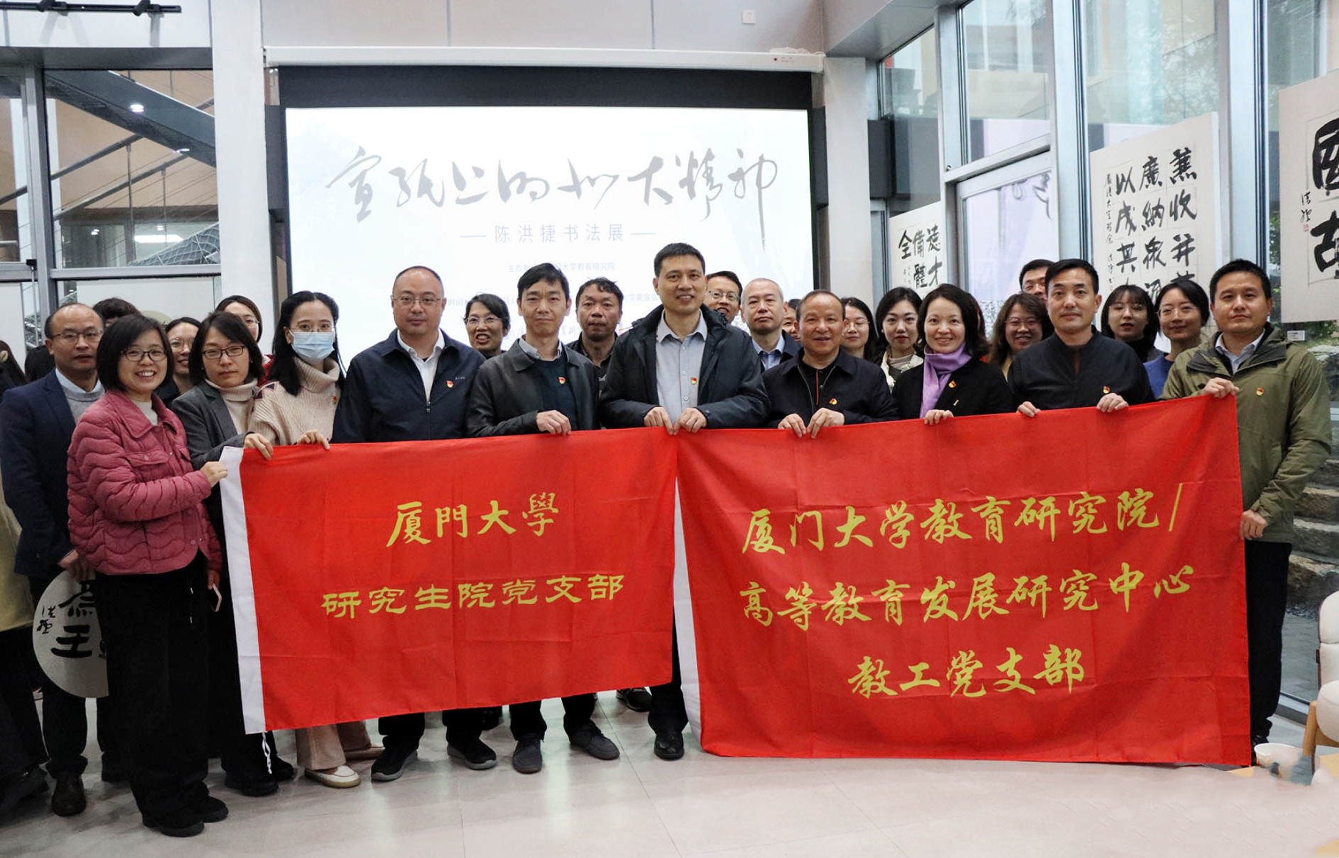 3月11日上午,研究生院党支部与教育研究院/高等教育发展研究中心教工党支部党员同志一同参加了在教育研究院黄宜弘楼隆重举行的陈洪捷教授“宣纸上的北大精神”书法展,陈洪捷教授娓娓道来书法作品背后蕴藏的北大传奇故事,通过艺术的视角呈现中国大学的精神风貌,让党员同志们感受中国传统书法的魅力。随后大家共同聆听陈洪捷教授《作为文化记忆的大学精神》的学术讲座,讲座从多维视角对大学精神做了精彩解读,引发了与会人员的热烈讨论,就大学精神的活性、大学精神的挖掘与建构以及大学精神如何传递等问题展开了深入探讨。