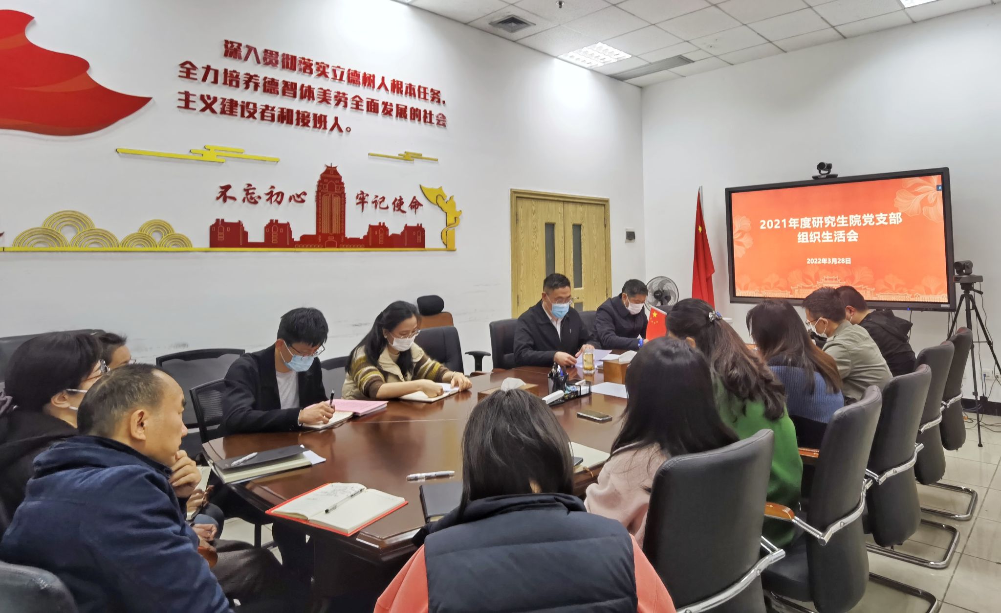 按照学校党委和机关党委的部署安排,3月28日下午,研究生院党支部在研究生院会议室召开2021年度组织生活会,开展民主评议党员,并进行“中华一家亲,共筑中国梦”主题党日活动。会议由研究生院党支部副书记余自中主持,研究生院全体党员参加此次会议。
