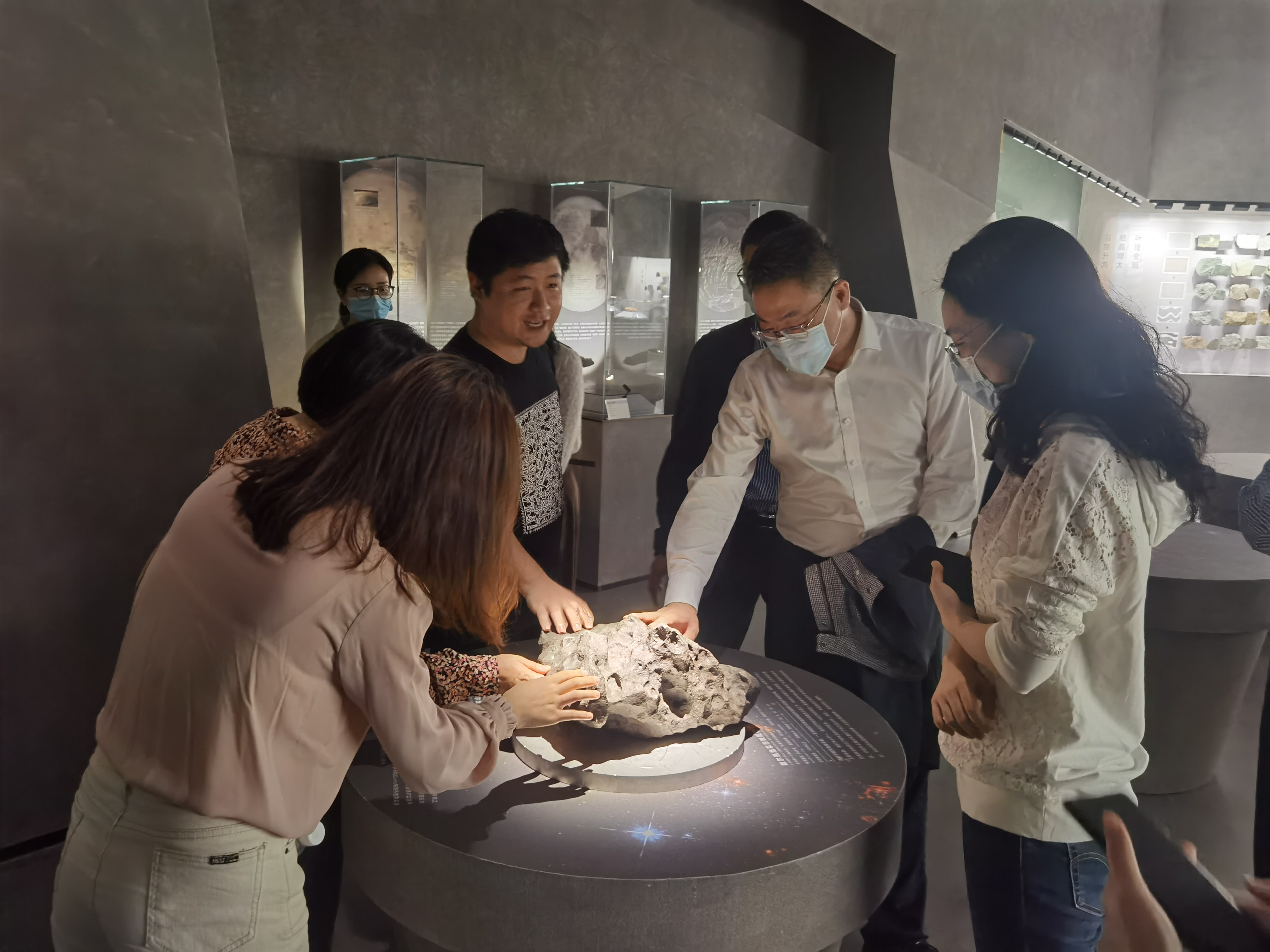 研究生院一行参观了英良石材自然历史博物馆。该博物馆是英良集团党支部坚持以公益科普类博物馆为载体,开展社会科普服务,打造的“服务+文化”的党建主题展示窗口。博物馆执行馆长钮科程从陨石到岩石矿物;从三叶虫化石到亚洲首例霸王龙足迹;从太阳系的诞生到地球历史的发展脉络;带领研究生院一行以全新视角了解地球变化、生命演变进程,并就党支部如何充分发挥自然历史博物馆宣教作用,将党建与业务深入融合,让公众在欣赏展品的同时,了解石文化,读懂自然历史,更好地服务石材产业进行了深入介绍。