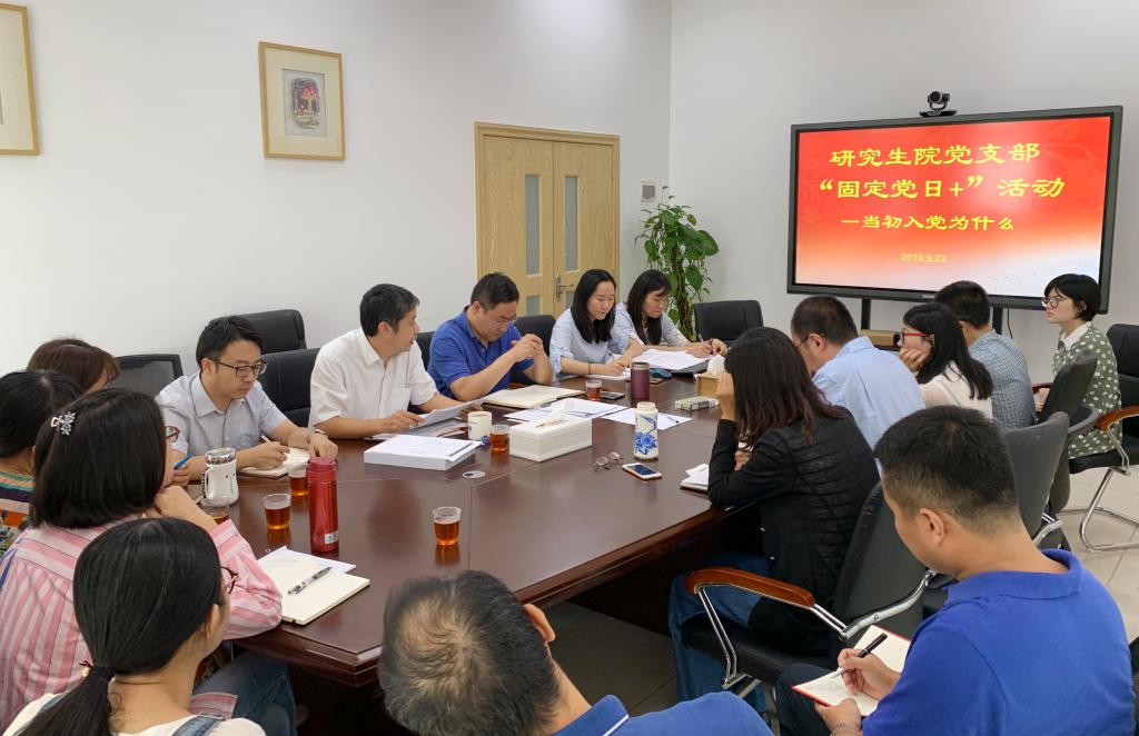 2019年9月24日下午,研究生院党支部以“当初入党为什么”为主题,开展了“固定党日+”活动。活动由研究生院党支部书记、研究生院副院长兼培养与管理办公室主任余自中主持。研究生院常务副院长方颖,培养与管理办公室副主任邱文华以及其他研究生党支部党员参加了本次活动。