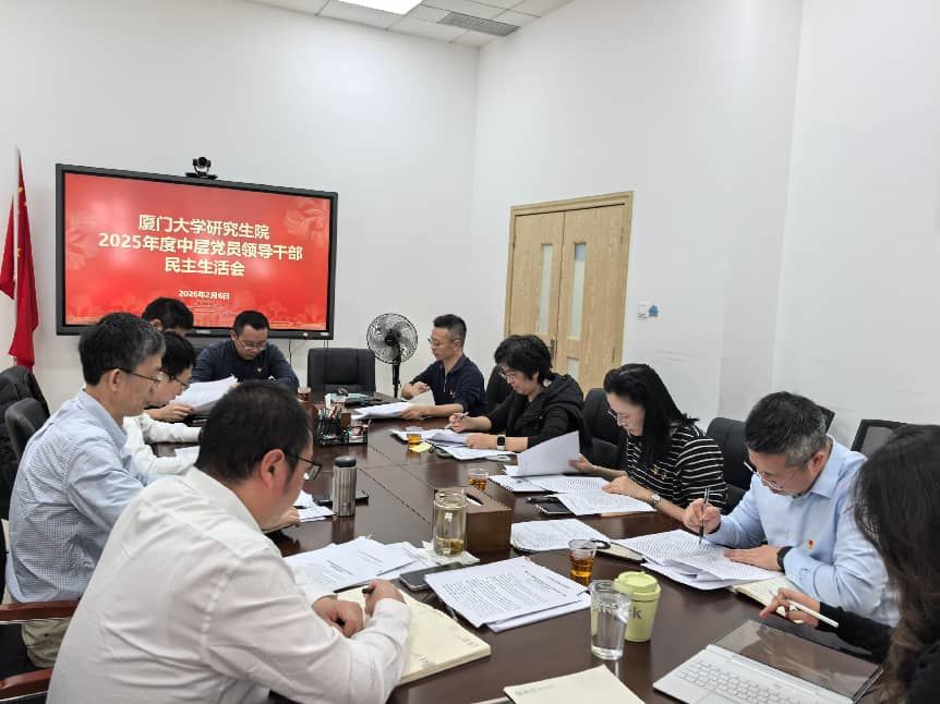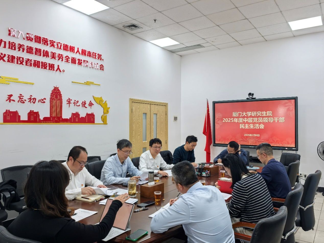 洪文晶代表领导班子作表态发言。他表示,本次会议大家放下了包袱,开诚布公、推心置腹地进行批评与自我批评“红红脸”“出出汗”,这是民主生活会最宝贵的价值。下一步,领导班子将立即着手建立整改台账,逐项销号落实,重点在以下几方面发力:一是强化理论武装与政治引领,及时跟进学习党的创新理论与教育领域最新精神;二是深化调研与系统谋划,尽快实现对各学科调研全覆盖,凝练厦大研究生培养特色与范式;三是推动体制机制创新,优化学科建设与研究生培养协同机制,加快交叉学科平台建设与卓越工程师培养改革;四是加强队伍建设与内部治理,关心青年干部成长,优化工作流程,提升管理效能与防范风险能力;五是抓紧抓实重大节点工作,全力办好2026年厦门大学研究生教育工作会议和全国研究生院院长联席会年度会议等重大活动,展现厦大风貌。他号召全体班子成员以此次民主生活会为新起点,团结一心、真抓实干,共同开创研究生教育与学科建设新局面。