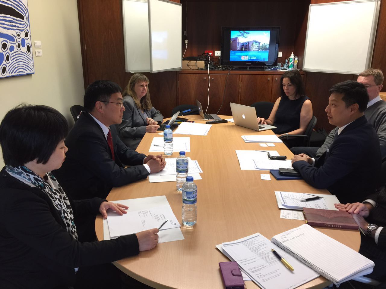麦考瑞大学建于1964年,为澳洲大学学术排名前8的高校。作为澳洲第一所开设精算课程的大学,麦考瑞大学不仅在以金融、精算、会计为代表的商科在世界上享有盛名,在人文科学方面,其在世界上位列31的语音学,以及位列45的心理学,亦是其科研实力的展现。在麦考瑞大学,该校负责研究生工作的高等学位研究处处长Ren Yi博士等热情接待了陶涛一行。双方互相介绍了各自学校研究生教育的情况,对建立两校之间研究生层面的教育与合作进行了深入的探讨。目前,研究生院已收到麦考瑞大学发来两校合作备忘录草案。该草案提议,从2015年起厦门大学研究生院每年可推荐10名学生通过国家留学基金委公派项目资助赴麦考瑞大学攻读博士学位,麦考瑞大学将免除这十名学生的学费。