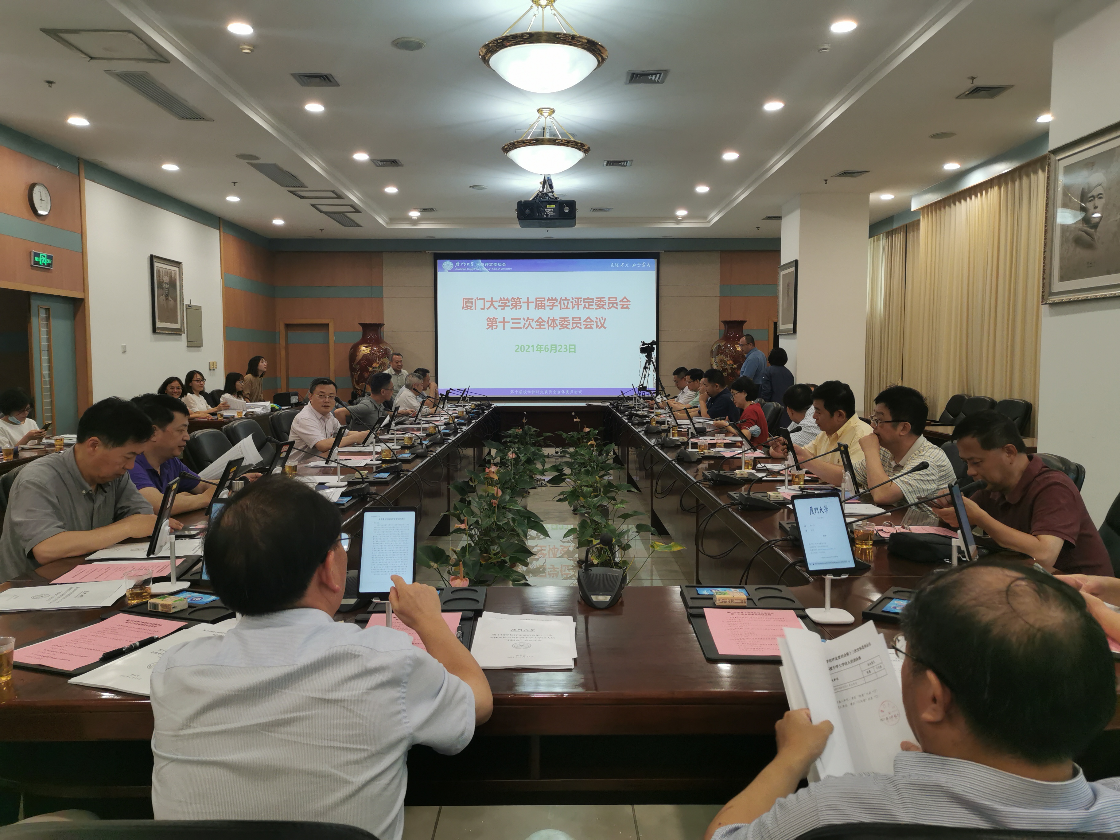 6月23日下午,厦门大学第十届学位评定委员会第十三次全体会议在颂恩楼215会议室举行。校学位评定委员会主席、校长张荣教授主持会议。
