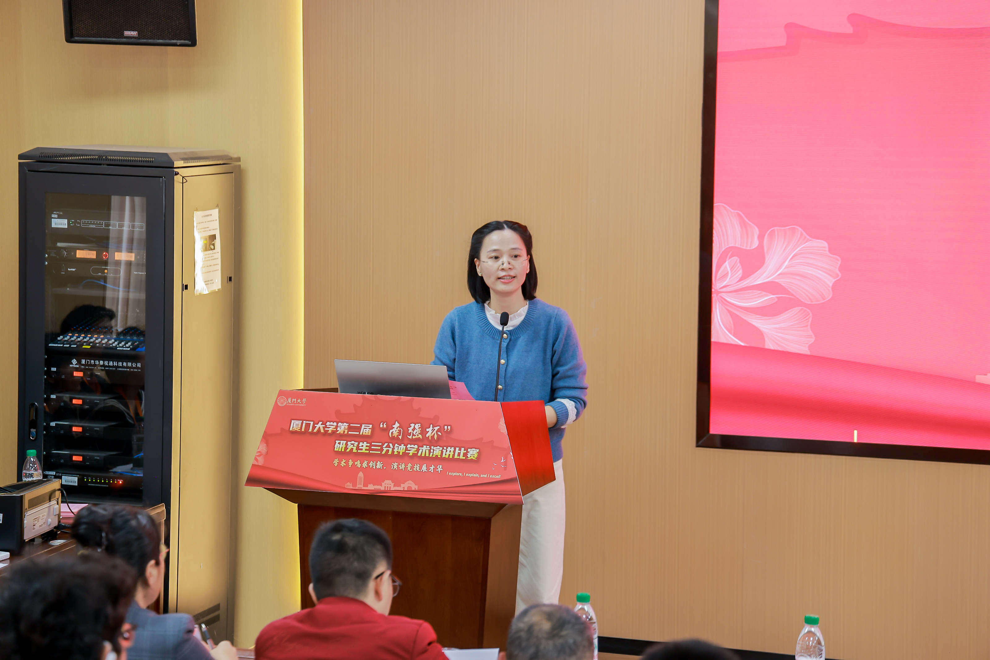 11月30日下午,厦门大学第二届“南强杯”研究生三分钟学术演讲比赛决赛在外文学院112报告厅举办。本次比赛由厦门大学研究生院主办,外文学院外语教学部承办,厦门大学“南强优博计划”活动管理团队成员策划并组织实施。研究生院副主任陈春萍、外文学院副院长戴鸿斌以及各学部专业教师评委莅临现场。