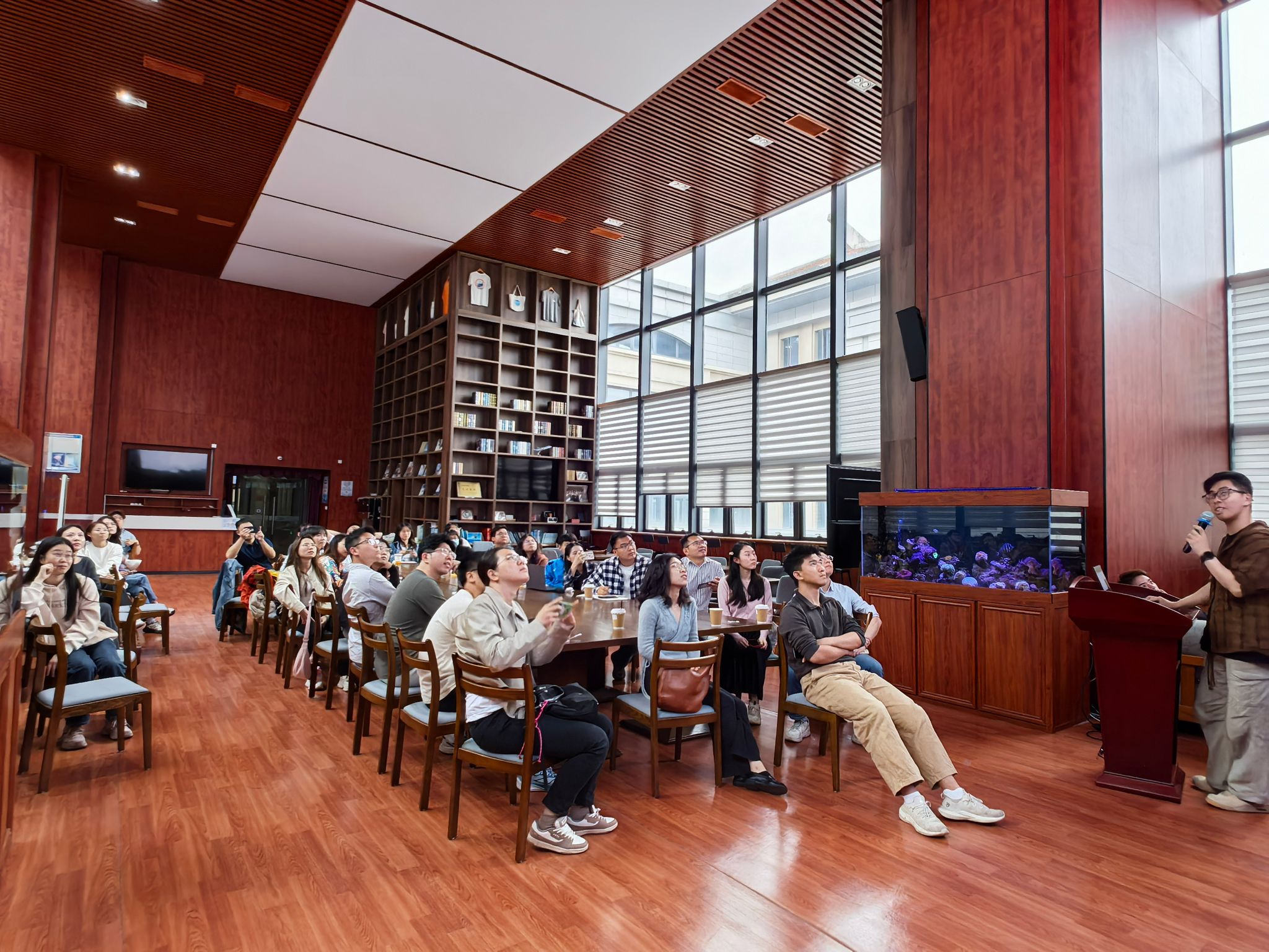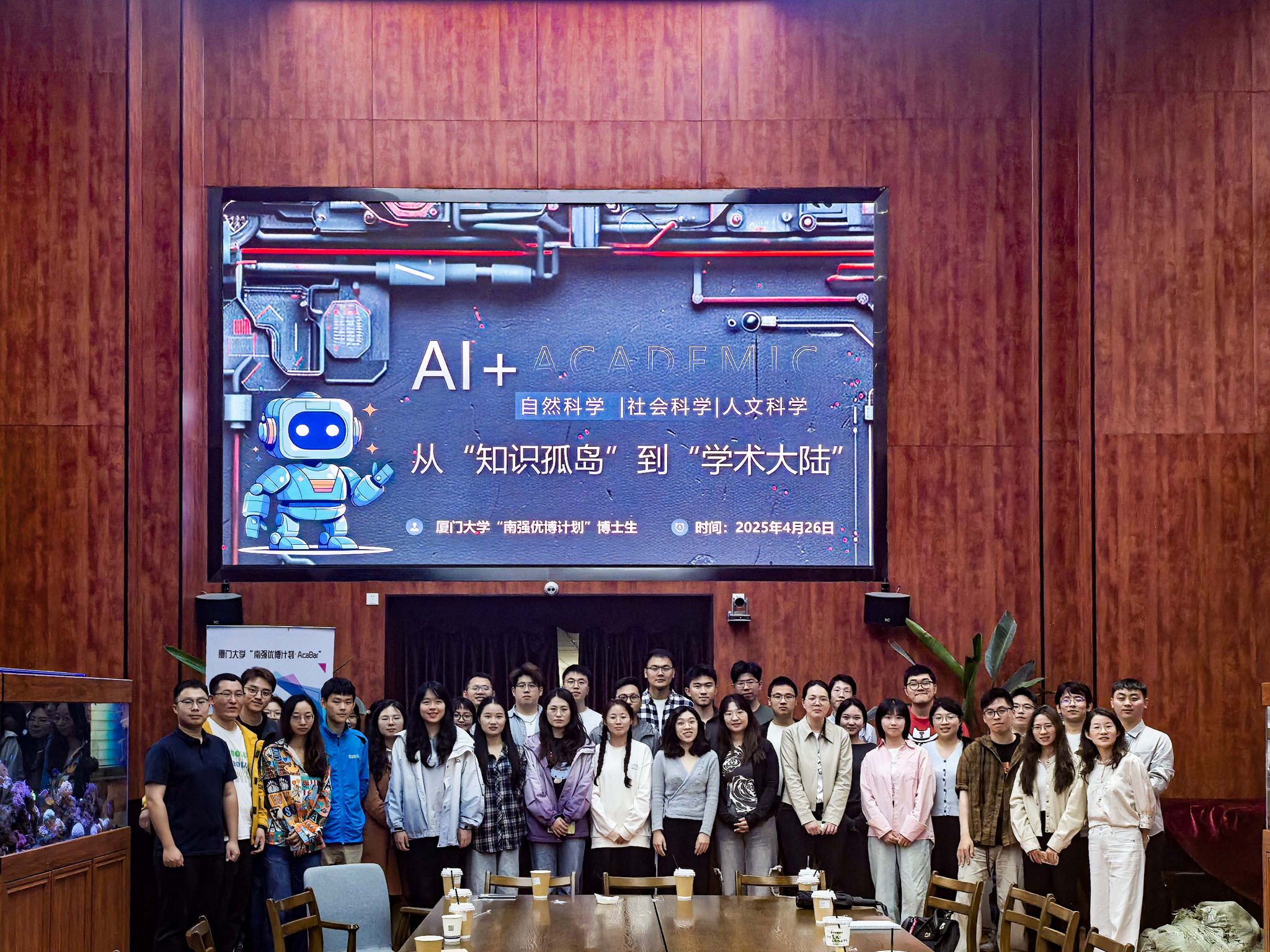 为贯彻落实学校第十二次党代会精神,推进实施“博学至善”行动,拓宽博士研究生学术视野,搭建多学科交叉融合交流平台,4月26日下午,厦门大学“南强优博计划·AcaBar”学术活动第二期在翔安校区海洋与地球学院咖啡厅举办。本次活动以“AI驱动的学科融合浪潮——从‘知识孤岛’到‘学术大陆’”为主题,来自公共卫生学院、能源学院、环境与生态学院、化学化工学院、教育研究院、哲学系等17个学院(研究院、直属系)的40余名博士研究生参加活动。本次学术活动由研究生院指导,“南强优博计划”博士生活动管理团队筹备组织。
