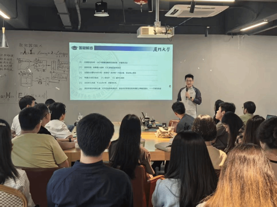 11月1日下午,厦门大学“南强优博计划·AcaBar”学术活动第三期在思明校区咖啡厅举办。本期活动以“出国(境)项目探索之旅”为主题,由研究生院培养与管理办公室陈沁芳老师做出国(境)交流交换项目政策解读,并联动多位已成功赴国(境)外交流的研究生分享实战经验,吸引来自哲学系、经济学院、化学化工学院、材料学院、生命科学学院、海洋与地球学院等15个学院(系)的40余名博士生踊跃参与。