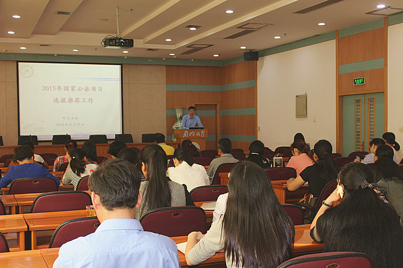 陈工就2015年国家公派留学研究生项目选拔推荐工作进行了布置动员。2015年国家公派留学研究生项目选派类别包括:国家建设高水平大学公派研究生项目、公派硕士研究生项目、创新型人才国际合作培养项目、艺术类人才培养特别项目、国际区域问题研究及外语高层次人才培养项目、中外政府互换奖学金项目等。相较于2014年,2015年国家公派项目有以下变化: