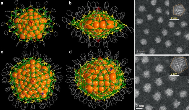 该研究工作在郑南峰教授的带领下、由国内外多个课题组共同努力完成。郑南峰课题组主要负责合成、结构表征和性能测试;唐紫超课题组负责原位程序升温-质谱的测试;厦门大学建筑与土木工程学院王东东课题组负责纳米颗粒结构内部的理论受力分析;芬兰于韦斯屈莱大学HannuHäkkinen课题组负责电子结构及吸收光谱的理论计算;澳大利亚核能科学与技术组织Alison J. Edwards博士和德国杜塞尔多夫大学BirgerDittrich教授参与单晶结构解析的指导;中科院物理研究所谷林研究员负责球差校正高分辨透射电子显微研究。该工作的共同第一作者为杨华艳博士(能源材料化学协同创新中心博士后)和王羽(博士生)。研究工作得到了科技部、国家自然科学基金委、芬兰科学院和德国科学基金的资助。