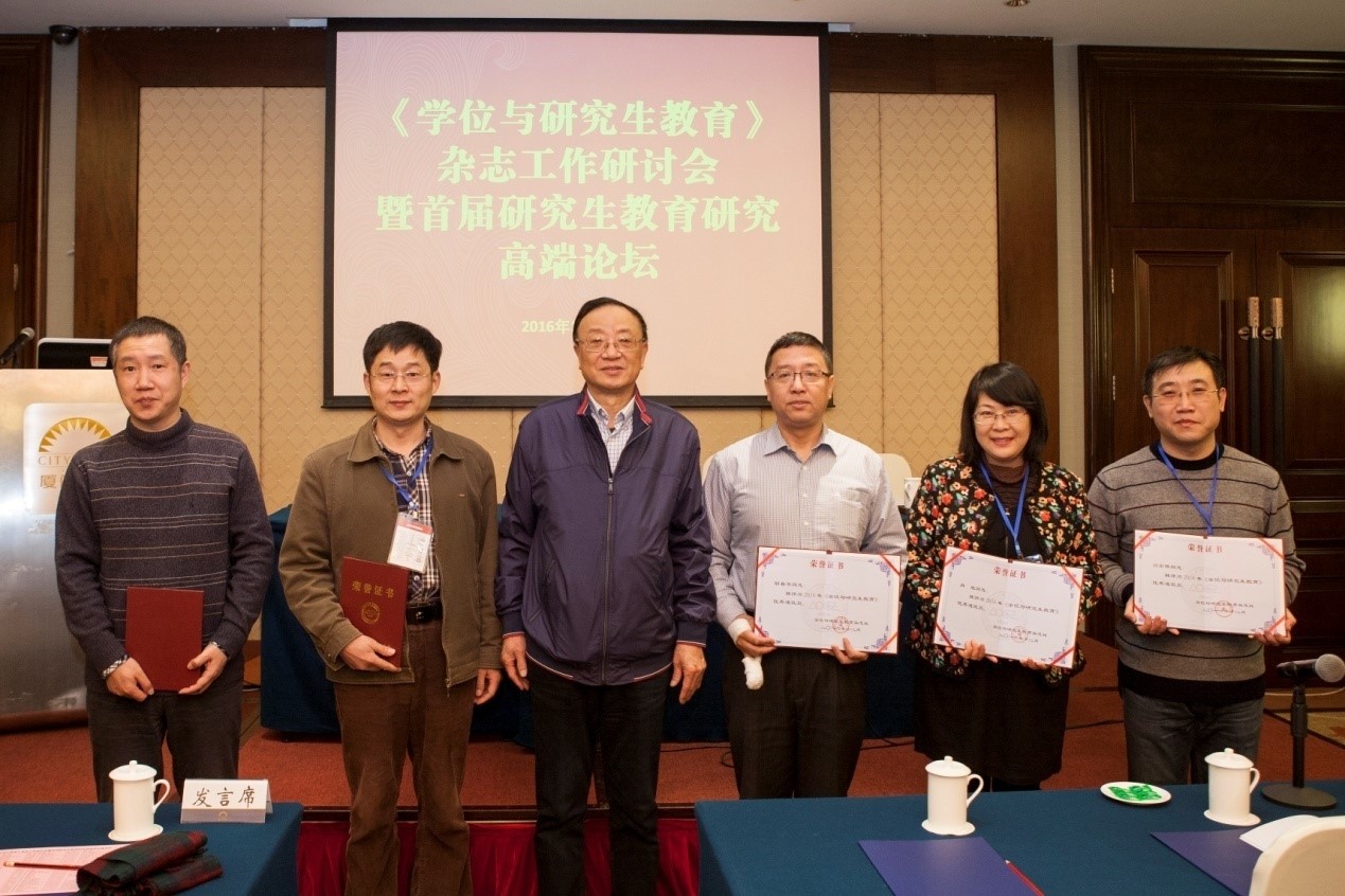 开幕式上,厦门大学校长助理谭绍滨教授首先代表厦门大学致辞,对来自五湖四海的参会代表表示热烈欢迎。他说,《学位与研究生教育》杂志是研究生教育领域的专业性、综合性学术刊物,为全国的学位与研究生教育理论与学术交流提供平台,担负着提高我国学位与研究生教育理论水平的重任。他希望,各位专家学者在厦期间能多给我校提出宝贵意见,促进我校各项工作特别是学位与研究生教育理论水平的进一步完善与发展。学位与研究生教育杂志社社长周文辉教授代表杂志社致辞。他首先介绍了《学位与研究生教育》的发展历程,并指出《学位与研究生教育》杂志与厦门大学渊源颇深,第一次杂志工作研讨会就是在厦门大学召开。他还代表杂志社对各位编委、兼职编辑、通讯员以及社会各界为《学位与研究生教育》期刊发展所做的贡献及厦门大学研究生院为本次杂志工作研讨会的辛勤付出与周到的安排表示衷心的谢意。北京理工大学原校长、《学位与研究生教育》主编匡镜明宣读了《关于表彰优秀编委、兼职编辑和通讯员的决定》,并为获奖者颁发荣誉证书。电子科技大学兰中文、厦门大学陶涛、北京科技大学张颖、东北大学巩恩普、南开大学王刚夫和复旦大学廖文武等6名编委、兼职编辑获得2016年《学位与研究生教育》优秀编委、优秀兼职编辑荣誉称号。山西大学吕宏伟、西北工业大学肖敏、武汉理工大学梁传杰、军械工程学院李希亮和吉林大学胡春平等5名通讯员获得2016年《学位与研究生教育》优秀通讯员荣誉称号。