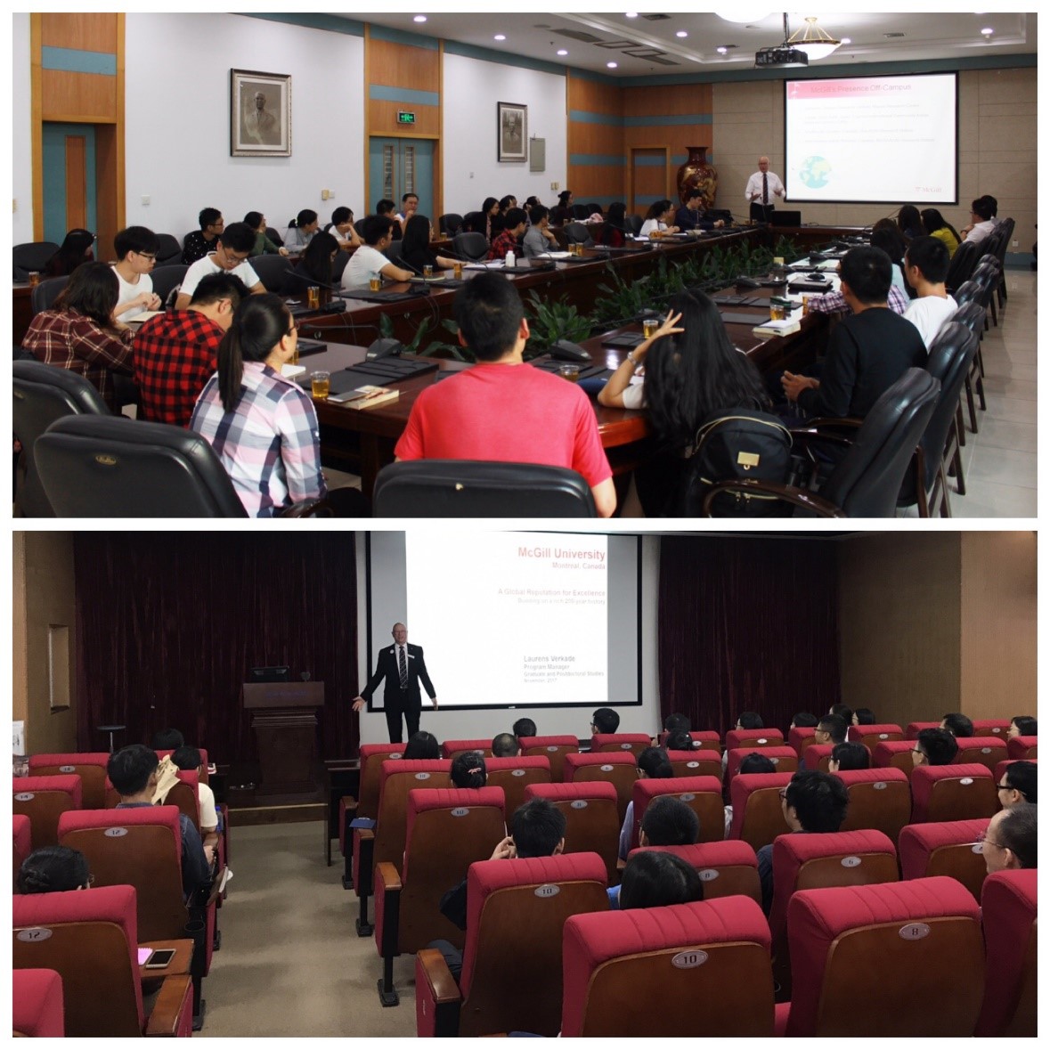 麦吉尔大学十分重视国际化交流合作,和世界上众多国家与地区的顶尖大学有学术往来。在中国,学校分别与清华大学、北京大学、上海复旦大学、上海交通大学、厦门大学等高校建立了紧密的合作关系。我校于2013年正式与加拿大麦吉尔大学签订合作备忘录,共同培养博士研究生,首开厦门大学与世界一流大学合作培养博士研究生的先河。按照协议,从2014年起,麦吉尔大学按照其录取标准每年可接受我校推荐的10名优秀学生免学费攻读博士学位。项目实施四年来,我校已有12人通过该项目获得麦吉尔大学的录取通知书。本次麦吉尔大学宣讲对于增进我校研究生对麦吉尔大学的了解、促进两校联合培养起到了积极促进作用。