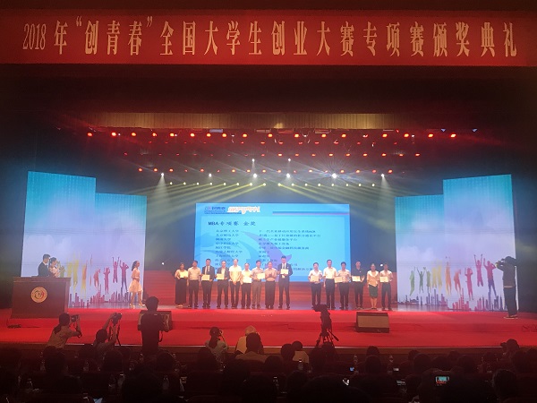 2018“创青春”全国专项赛由共青团中央、教育部、人力资源和社会保障部、中国科协、全国学联、浙江省人民政府主办,共青团浙江省委、金华市人民政府、浙江师范大学承办。大赛自今年3月启动以来,得到了全国各大高校的积极响应和社会各界的广泛关注,共有1708件作品报名参赛,经高校选拔、组委会审核后,954件作品入围全国复赛。经专家网络评审,MBA专项赛、网络信息经济专项赛各100件作品入围终审决赛,最终评审产生MBA专项赛金奖10项、银奖20项、铜奖60项和网络信息经济专项赛金奖10项、银奖21项、铜奖59项。