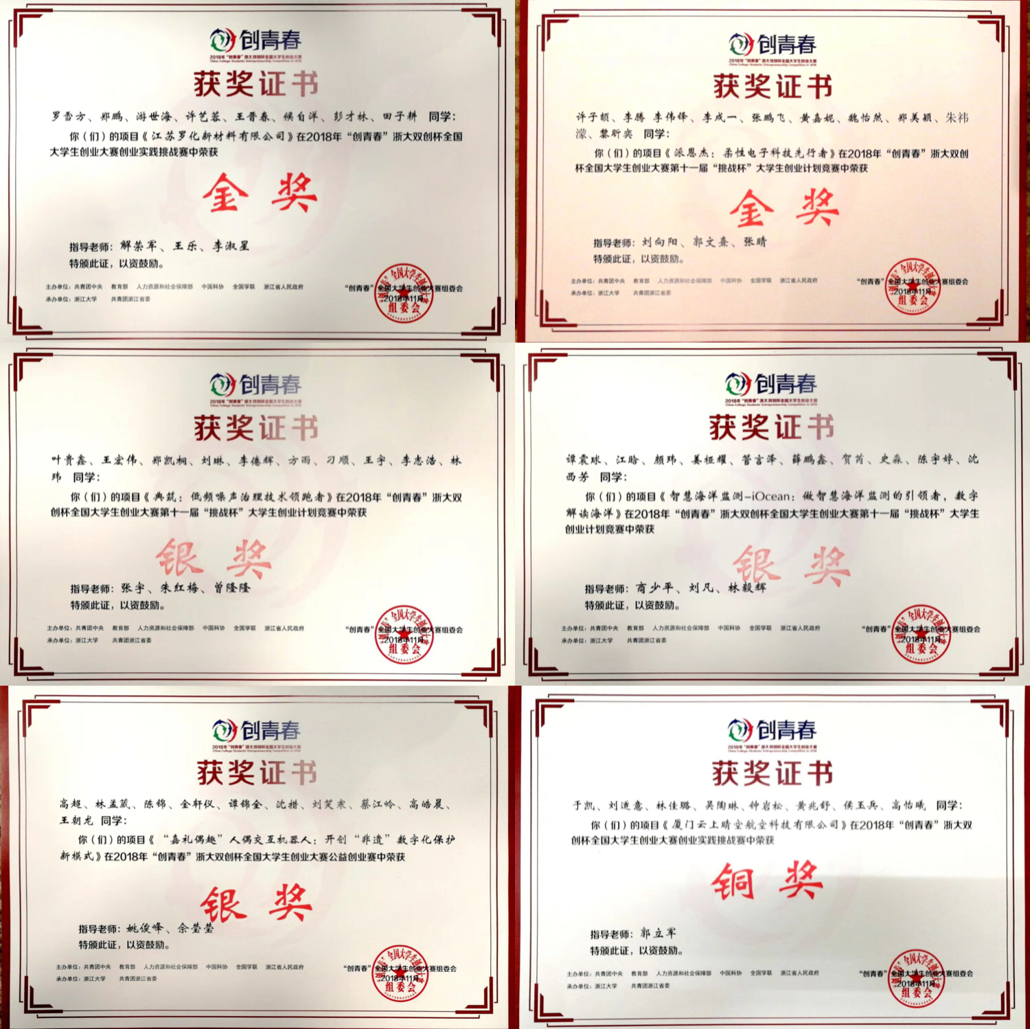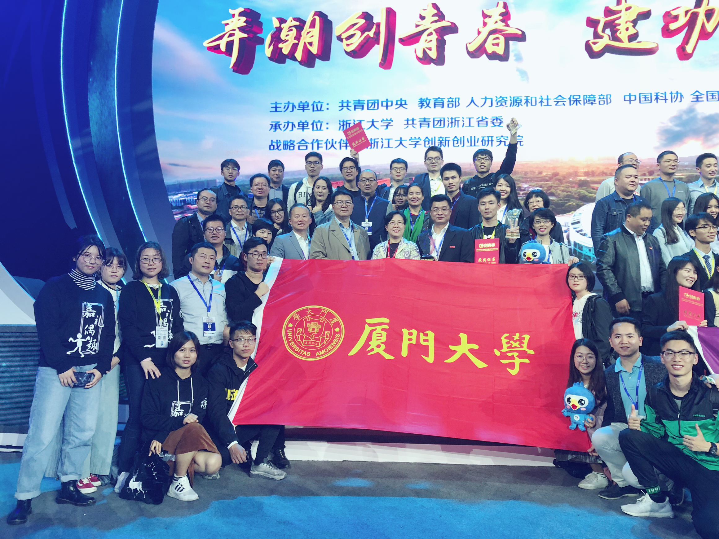 2018年11月1日—3日,由共青团中央、教育部、人力资源和社会保障部、中国科协、全国学联、浙江省人民政府联合主办的2018年“创青春”全国大学生创业大赛决赛在浙江大学举办。经过激烈角逐,我校取得2金3银1铜的优异成绩,总积分位列全国高校第11名、福建省首位,大赛开办以来连续三届捧得大赛“优胜杯”,并获“高校优秀组织奖”。