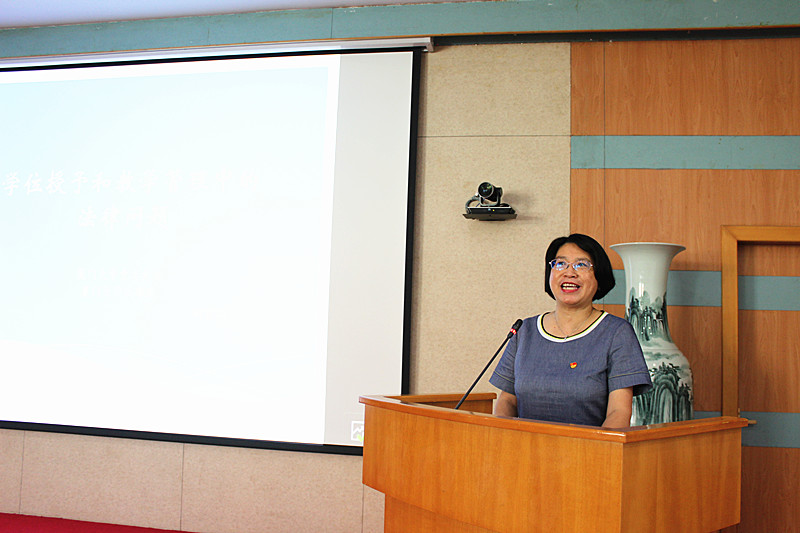 随后,党委党校副校长何丽新从“高校学位授予和教学管理的法律定性”、“常见法律纠纷”、“规章制度问题”三方面,结合两个生动详实的案例,深入剖析了高校在学位授予和教学管理中存在的法律问题。