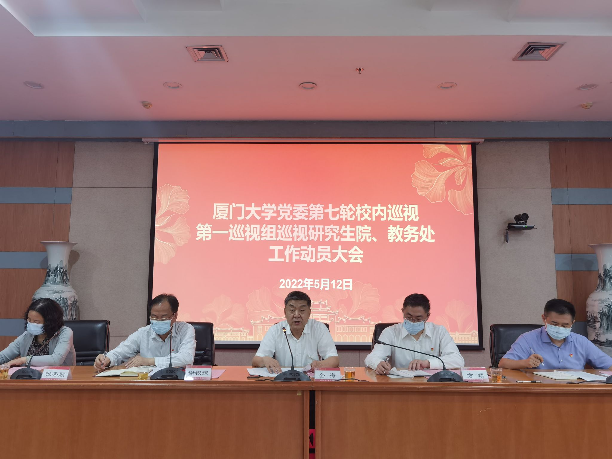 根据校党委统一部署,5月12日上午,校党委第一巡视组巡视研究生院工作动员会在颂恩楼220会议室召开。校党委副书记、纪委书记、国家监委驻厦门大学监察专员全海出席会议并提出工作要求,第一巡视组组长谢银辉作动员讲话。巡视组全体成员、党委巡视办有关工作人员、研究生院全体在职教职工在现场参会,各学院(研究院)分管研究生教育副院长、研究生秘书通过线上参加会议。会议由校长助理、研究生院常务副院长方颖主持。