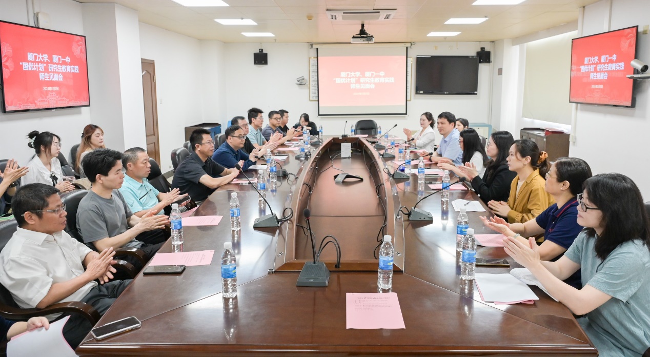 5月9日上午,厦门大学与厦门一中联合举办了“国优计划”研究生教育实践师生见面会。厦门大学研究生院常务副院长谢兆雄教授、厦门一中副校长钟斌,厦门一中教务处和教研室有关负责人、高一高二年段长、教育实践导师代表,厦门大学教育研究院、教师发展中心研究生导师代表,以及即将进入基地开展校外实践的“国优计划”研究生等参加活动。