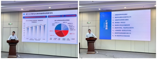 会议伊始,研究生院培养与管理办公室副主任(主持工作)郭建鹏教授结合“厦门大学研究生学习经历调查”结果,深入分析了当前我校研究生教育面临的新形势、新挑战,呈现的新特征和新变化,并就新一轮研究生培养方案修订、研究生分类培养、推进卓越工程师学院建设、加强研究生培养过程管理等重点工作进行了详细部署,强调要坚持以学生为中心,深化研究生教育教学改革,创新人才培养模式,着力培养拔尖创新人才。