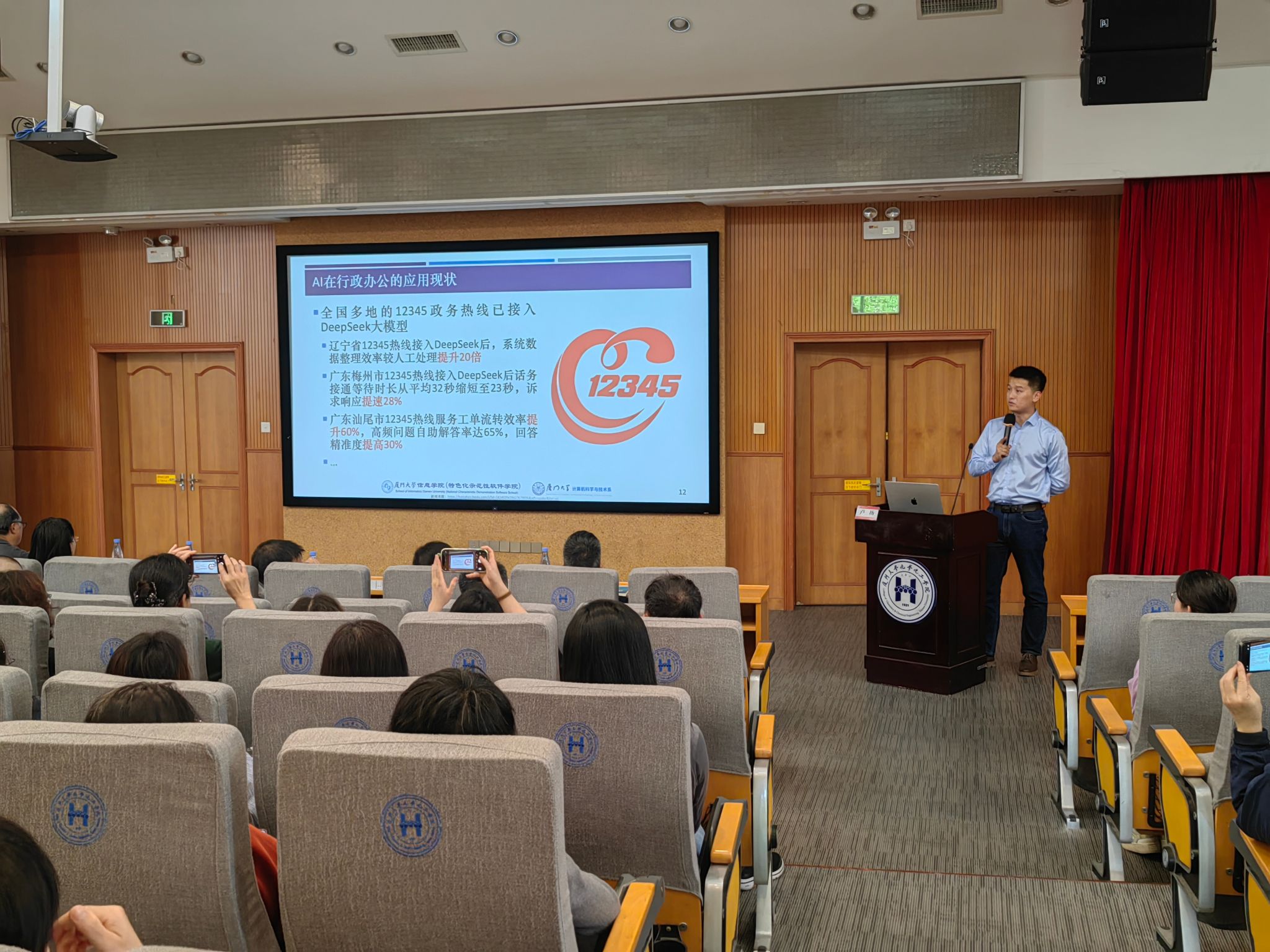 为深入贯彻落实党的二十届三中全会精神和两会精神,推动数字技术与高校治理深度融合,进一步提升行政管理干部的工作效能与创新能力,3月26日,研究生院党支部邀请信息学院卢杨博士为行政管理干部带来题为“DeepSeek助力行政办公:效率与创新的新引擎”讲座。参加党支部共建学习专题讲座的还有来自教育研究院/高等教育发展研究中心教工党支部、管理学院中国能源政策研究院教工党支部、化学化工学院院办党支部、表界面化学全国重点实验室党总支委员会和公共事务学院教工党支部等党员代表。