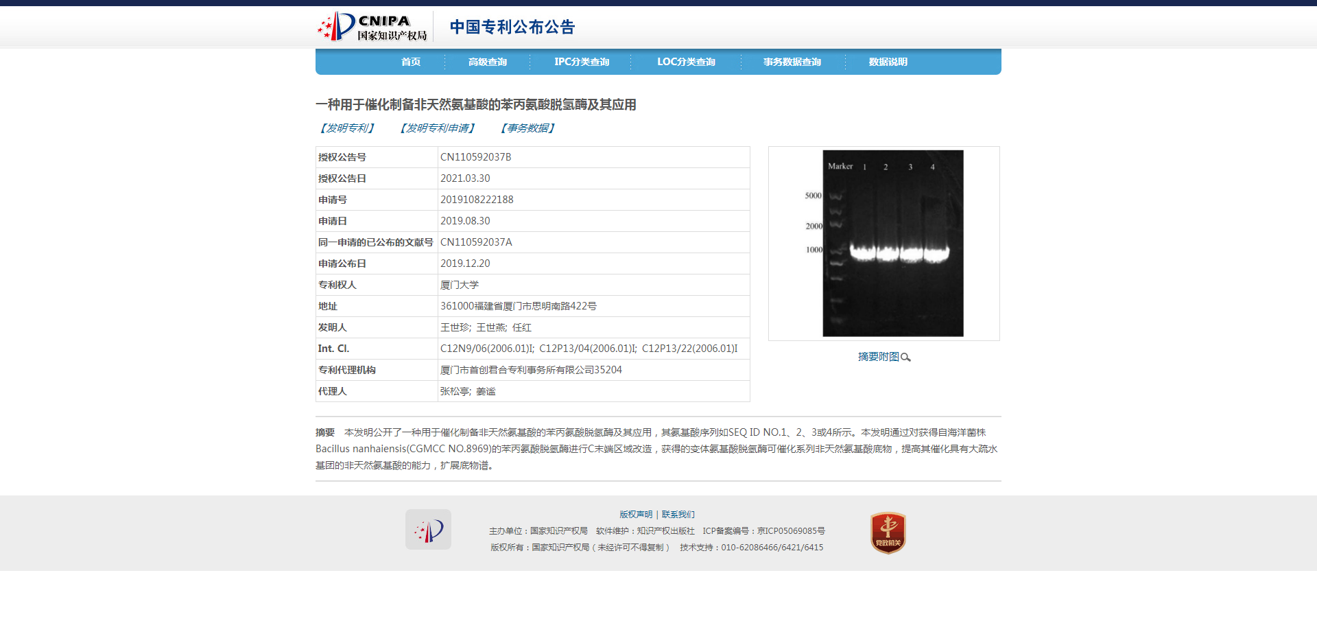 发明名称:一种用于催化制备非天然氨基酸的苯丙氨酸脱氢酶及其应用